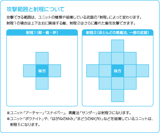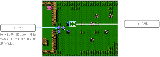 ※戦闘によっては、自動的に行動する味方ユニット(青色)が登場します。この味方ユニットには指示を出せません。