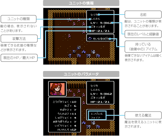 アルムまたはセリカの部隊のユニットを操作し、敵の部隊と戦ってください。 ユニットとはキャラクターを表す駒で、1ターンに1回行動することができます。 |