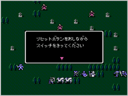 戦闘の途中で一時的に進行状況を保存して、ゲームを中断できます。なお、「リセットボタンをおしながら スイッチをきってください」と表示されますが、この操作は必要ありません。 |