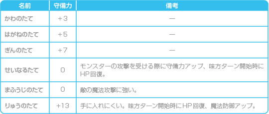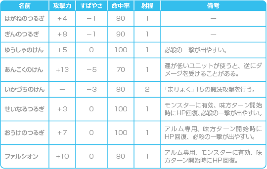 「ソルジャー」「アーマー」「バロン」「ナイト」「パラディン」「Gナイト」「Pナイト」「Fナイト」が装備できます。