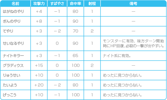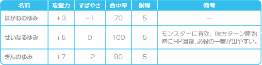 「アーチャー」「スナイパー」「ボウナイト」「勇者」が装備できます。