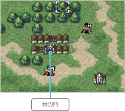 敵の城を守る敵ユニットを倒し、主人公が城門に入ると表示されます。 このコマンドを選ぶと物語が進んだり、章をクリアできます。 |