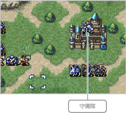 守備隊のいない自軍の城の城門で選択でき、ユニットを城の守備隊とします。 守備隊が倒されないかぎり、その城が敵に奪われることはありません。 |