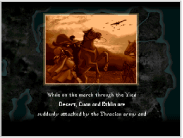 トラキア半島の小国レンスターに一人の英雄がいた。 聖戦士ノヴァの血を受け継ぐ王子、その名をキュアンという。 グラン暦761年、グランベル王国シアルフィの公子シグルドは宮廷内における勢力争いと、これを利用するロプト教団の策謀によって反逆者の汚名をきせられ、イード砂漠に孤立していた。 キュアン王子は苦境に立つ友を救うべく一軍を率いてイードに向かうが、その途上、背後よりトラキア軍の奇襲を受け配下のランスリッターとともに全滅する。 後に「イードの虐殺」と呼ばれるこの戦いでレンスター王国の希望であったキュアン王子は愛する妻とともに、その短い生涯を終えた。 王子夫妻の戦死によるレンスターの弱体化と皇帝アルヴィスによるグランベルの統一は トラキア地方の勢力図を激変させた。 半島統一を悲願とするトラキア王トラバントは この機を逃さじと侵攻を開始、またたくまに北部諸国を制圧する。 だが、時を移さずグランベル帝国軍がトラキアに侵攻、 メルゲン谷の戦いで大敗北を喫したトラバント王は野望むなしく南へと敗退した。 |