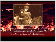 レンスター落城の際、騎士フィンに抱えられ、 数少ない仲間とともに辛くも脱出に成功する。 その後、リーフたちはアルスター、ターラといったトラキア各地をめぐる逃避行の末、東海岸の小さな開拓村、フィアナにたどりつく。 フィアナの女領主エーヴェルは、彼らを快く迎え入れ、 リーフは彼女の元で、彼女を慕って集う若者たちと交流を重ねながら、次第に大人へと成長を重ねていった。 時おりしも、大陸東方イザークの隠れ里ティルナノグでは、 シグルドの遺児セリスを中心とする勢力が着実に力をつけつつあり、 ゆるやかにではあったが、着実に新たな時代への胎動は始まっていた。 そしてグラン暦776年、リーフ15歳。 彼にとっての「聖戦」が、今始まろうとしている…… |