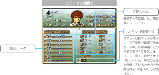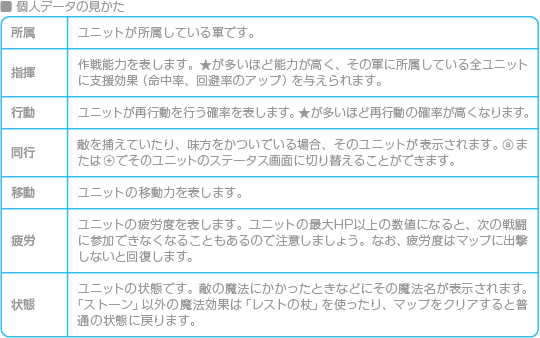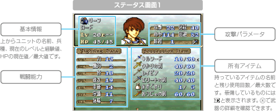 を押すと、そのユニットのステータス情報が表示されます。もとの画面に戻るときは