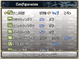 戦闘シーンの演出や画面の表示、音楽のオン/オフなど、ゲーム中のさまざまな設定を変更できます。