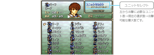 8章以降のマップでは、ゲームスタート時に出撃の準備をすることができます。 |
