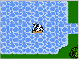 ゲームを進めていくと、「船」などの乗り物を手に入れることができ、今まで行けなかった場所にも移動できるようになります。乗り物にはそれぞれ進める地形や、乗り降りできる場所が決まっています。 |