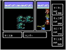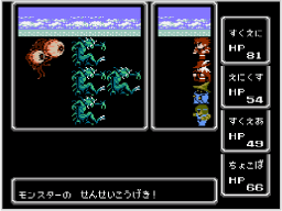フィールドやダンジョンなどで敵と出会うと、戦闘画面になります。 |