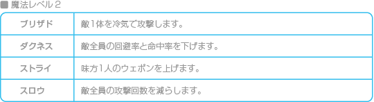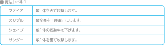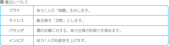 ※マップ画面だけ、もしくは戦闘画面だけしか使えない魔法もあります