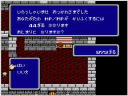 武器屋、防具屋、道具屋、魔法屋では、店主に話しかけると、「かう」「うる」「ことわる」の3つのメニューが表示されます。