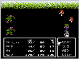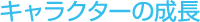 キャラクターは、戦闘中の行動に応じて成長していきます。たとえば、戦闘コマンドの「たたかう」を選ぶ回数が多いと、ステータスの「ちから」が上がり、「まほう」で黒魔法を多く使うと「ちせい」が上がります。ただし、行動によってはステータスが下がってしまうこともあります。