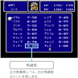 ※戦闘から逃げ出したり、戦闘終了時に、HPが0だったり、特定の状態異常(石、蛙、忘却、呪い、猛毒、盲目)にかかっている場合は、熟練度ポイントは上がりません。