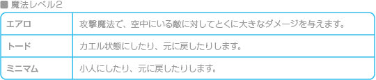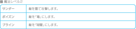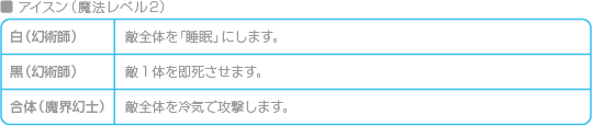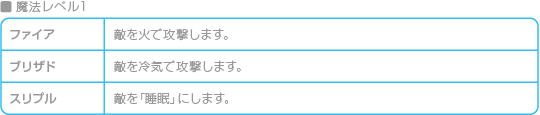 白魔法にはHPを回復したり、状態異常を治すものが多くあります。 ![]() ![]() |