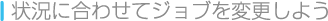 | 状況に合わせてジョブを変更すると、物語をうまく進められることがあります。たとえば、魔法しか通用しない敵が出現する場所では、魔法を使えるジョブを中心に編成する……などです。 そのときのジョブと敵の相性が悪いときは、ジョブを変えてみるのも1つの方法です。 |