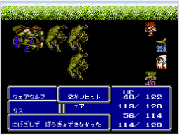 戦闘中に1人でも「にげる」のコマンドを選んだ場合、全員の行動が終わるまで味方全員が「にげごし」になり、受けるダメージが増加します。「にげる」のコマンドを選ぶときは、慎重に行ってください。 |
