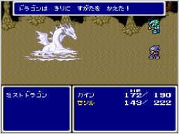 バトル中はつねに時間が流れており、こちらが行動しないと敵から一方的に攻められてしまいます。また、時間の経過とともに変身する敵がいるなど、さまざまなことが起こります。 のちの『FF』シリーズで定番となるこのシステムは、このゲームで最初に使われました。 |