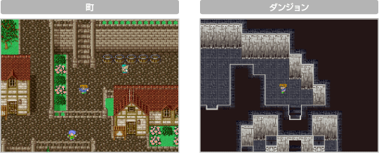 マップ画面には、「フィールド画面」と「町・ダンジョン画面」があり、 |