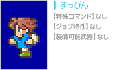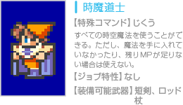 ![]() すべての武器・防具を装備することができるが、ジョブレベルはアップしない。アビリティを2つセットすることができる。 |