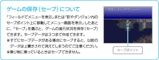※戦闘でパーティ全員が「せんとうふのう」、「ゾンビ」、「石化」のステータス異常になると全滅し、ゲームオーバーとなります。