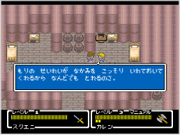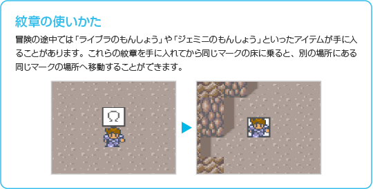 町やダンジョンでは、先に進むために仕掛けを作動させたり、武器を使うことがあります。 |