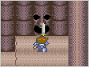 スイッチを突くと、仕掛けを作動させることができます。また、閉じている入り口を突くと、開けることができます。 |