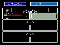 進行状況をセーブできます。3つのファイルからセーブしたい場所を選び、 ※フィールド画面や、町・ダンジョン画面で