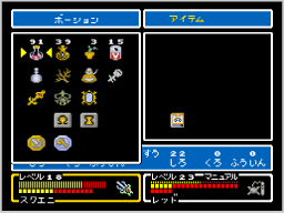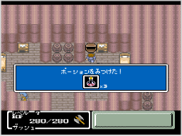 | 木箱のなかに回復/治療アイテムが入っていることがあります。木箱のアイテムは町やダンジョンを出て、再度入ると復活しているため、何度も出入りするとたくさん手に入れられます。多めに持っておくと、白魔法を温存できるため、長いダンジョンを冒険する際には特に役立ちます。 | ![]() |