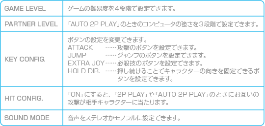 ※「KEY CONFIG.」の設定は、設定したいボタンを押してください。