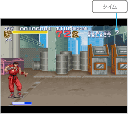 コンティニューすると、ふたたびタイムが表示されます。00になる前に ※2人でプレイしている場合は、2人ともゲームオーバーになるとコンティニュー画面になります。 ![]() |