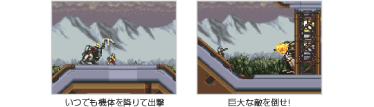 ゲームの基本はヴァンツァーを用いての戦いですが、状況に応じてパイロットが機体を降り、単独で行動することもできます。ハンドガンやハンドグレネードなどの武器をうまく使いこなせば、1人で強力な敵ヴァンツァーを倒すことだってできるかも? ![]() |