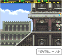 ステージの左端に移動すると特殊行動カーソルが表示され、ここで |