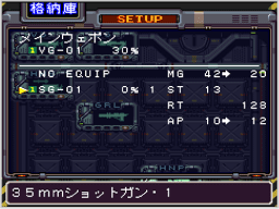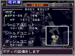 ヴァンツァーで戦うと、使用中の機体に対する習熟度が上がっていきます。習熟度に応じて、機体の防御力とHPがアップします。 艦内メニューの「格納庫」内「SETUP」で習熟度を確認しましょう。 |