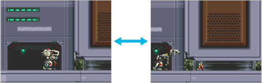 ヴァンツァーは戦闘力が高く強力ですが、せまい通路などに入ることはできません。そんなときはヴァンツァーから降りて、パイロット単独で行動しましょう。このようにヴァンツァーとパイロットの2つをうまく使い分ければ、ミッションをスムーズに進めていくことができます。 ![]() |