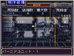 | ヴァンツァーの機体や装備はおもにショップで購入できます。より効果的なウェポンを装備したり、強力な機体に乗り換えていくのも大切ですが、ジャンプ能力を高める「バーニアユニット」や移動速度をアップする「ダッシュユニット」も非常に重要。ミッション中のアクションの幅が広がるので、ぜひゲーム序盤から手に入れましょう。 | ![]() |