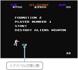 ※イクスペルの残り数は、ゲーム開始直後やミスをしたあとの画面で確認できます。 |
