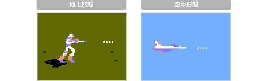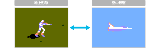 を押し続けると変形し、地上形態と空中形態が切り替わります。