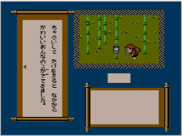 | むかしむかし、長串村におじいさんとおばあさんが仲むつまじゅう暮らしておった。 しかし2人には、子どもがおらんでのう。 くる日もくる日もお地蔵さまに、どうか子どもを授けてくだされと信心ぶこうお祈りしておった。 そんなある日のことじゃった……。 おじいさんとおばあさんは、不思議な夢を見たのじゃ。 なんと男の子と女の子、2人の赤ん坊を授かると……。 2人してそのような夢を見るとはのう……。 まこと不思議なこともあるもんじゃて。 そして、あくる日のこと。 山に芝刈りに行ったおじいさんは、竹やぶで女の赤ん坊を見つけたのじゃよ。 もう驚いたの、何の……。 いっぽう川に洗濯に行ったおばあさんは、男の赤ん坊を見つけたというわけでな。 おじいさんとおばあさんは、それはもう大喜びでのう。 自分らの子どもとして、2人の赤ん坊を育てることにした……というわけじゃ。 月日は流れ。 2人の子どもも、ものごころつく年ごろになってのう。 一家はむつまじゅう暮らしておったわけなのじゃが……。 そのころから、鬼やら龍やらがそこいらを荒らしまわるようになりおった。 それが何やら、子どもらの生まれの秘密とつながりがありそうでのう。 やがて2人は、遠く遠くはてしない旅に出ることにあいなるのじゃ。 |