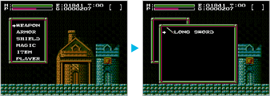 主人公は強い武器や防具、魔法を装備することで、敵に与えるダメージを増やしたり、受けるダメージを減らすことができます。装備を変えるときは、 ![]() |