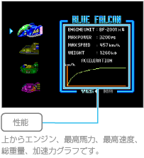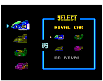 同時に走るライバルマシンを決定したあと、 なお、「NO RIVAL」を選ぶと1人で走れます。 |