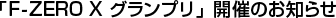 勇敢なるF-ZEROパイロットの皆様へ 不慮の事故により、長らくその開催を自粛しておりました「F-ZERO グランプリ」でありますが、ファンの方々の熱い支持を受け、ようやく再開の運びとなりました。つきましてはこれを機にレギュレーションの大幅な改定、および公式ルールの見直しを行い、装いも新たに大会名を「F-ZERO X グランプリ」と改めさせていただきます。またこれに伴い、グランプリの運営を司る我々も役員を一新し、より激しいレースが展開されるよう、努力いたします。それでは皆様方の多数のご参加を心よりお待ちしております。 F-ZERO X 実行プロジェクト |