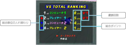※「OPTIONS」で「VSコンピュータ(2P、3P)」を「あり」にした場合、コンピュータのマシンにもポイントが与えられます。