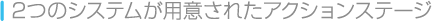オーソドックスな横スクロールのアクションが楽しめるステージ。 画面の左右から現れる敵を次々と倒し、画面の端までたどり着くとフィールドにもどることができます。 ![]() |