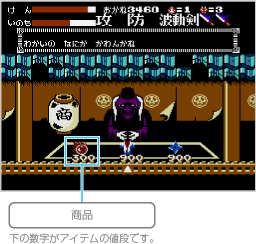 お店ではさまざまなアイテムを購入できます。 また、 ※同じアイテムは複数持てません(2つ目を買っても、ただお金が減るだけです)。すでに持っているアイテムを買わないよう、注意してください。
