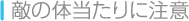 敵を攻撃して、ダメージを与えた直後なら、敵とぶつかってしまってもダメージを受けることはありません。これを利用し、敵を攻撃しながら相手をすり抜けることができれば、スムーズに横スクロール画面を進めます。 |