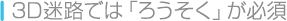 | 3D迷路のなかは真っ暗闇になっており、アイテム「方向石」がないと自分が向いている方向もわかりません。アイテム「ろうそく」で明るくしなければ、まともに進むことすらできないので、お店で見つけたら、忘れずに買っておいてください。 | ![]() |