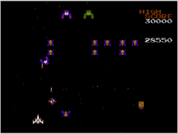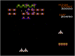 敵は数機ずつ現れて編隊を組んでいきます。敵の数が増えすぎると、攻撃をかわしきれなくなってしまうので、その前に確実に数を減らしていきましょう。また、左側または右側の敵を集中して攻撃し、相手が攻撃してきたときに逃げられるようなスペースを確保しておくのも重要です。 |