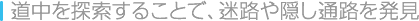 | ゲームを進めていくと、洞窟や隠し通路を発見することがあります。洞窟の中は迷路になっており、重要なアイテムなどが落ちています。隠し通路は、離れた場所までの近道になっており、遠くまですぐに移動できます。このような仕掛けが各地にあります。 | ![]() |