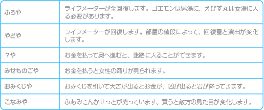 お金を賭けて、ばくちを打ちます。サイコロの目の大小を当てると所持金が倍になる(はずすと半分になる)ものと、サイコロの目を当てるとアイテムが貰えるものの2種類があります。